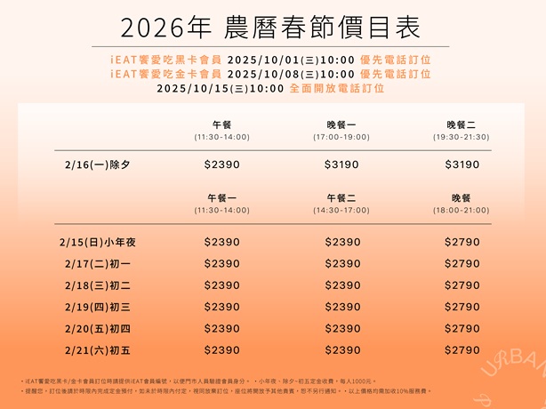 春節期間2026/02/15(小年夜)~02/21(初五) 席次即將開放#電話訂位: