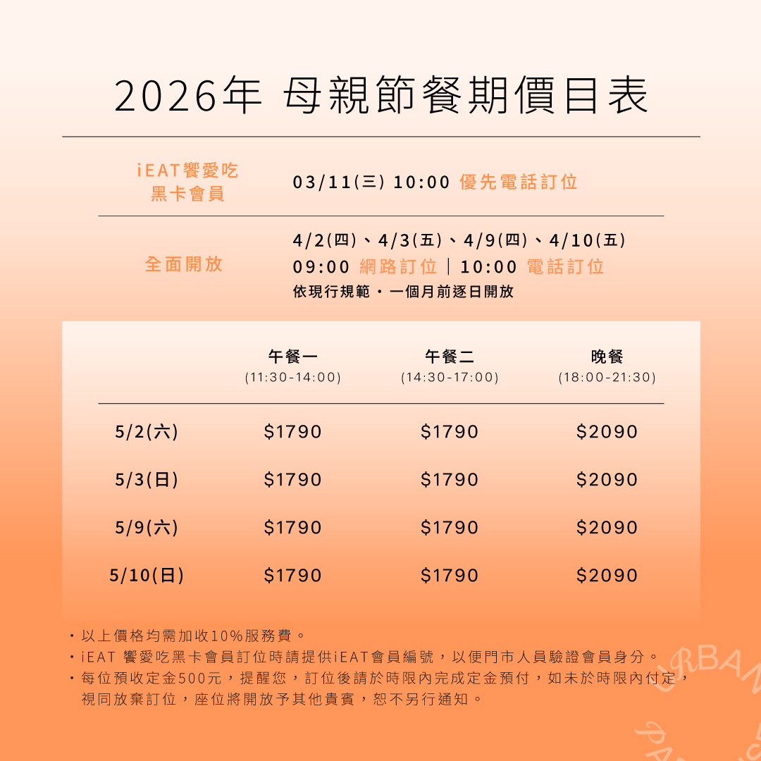 -03/11(三) 10:00 起開放「黑卡」會員電話訂位